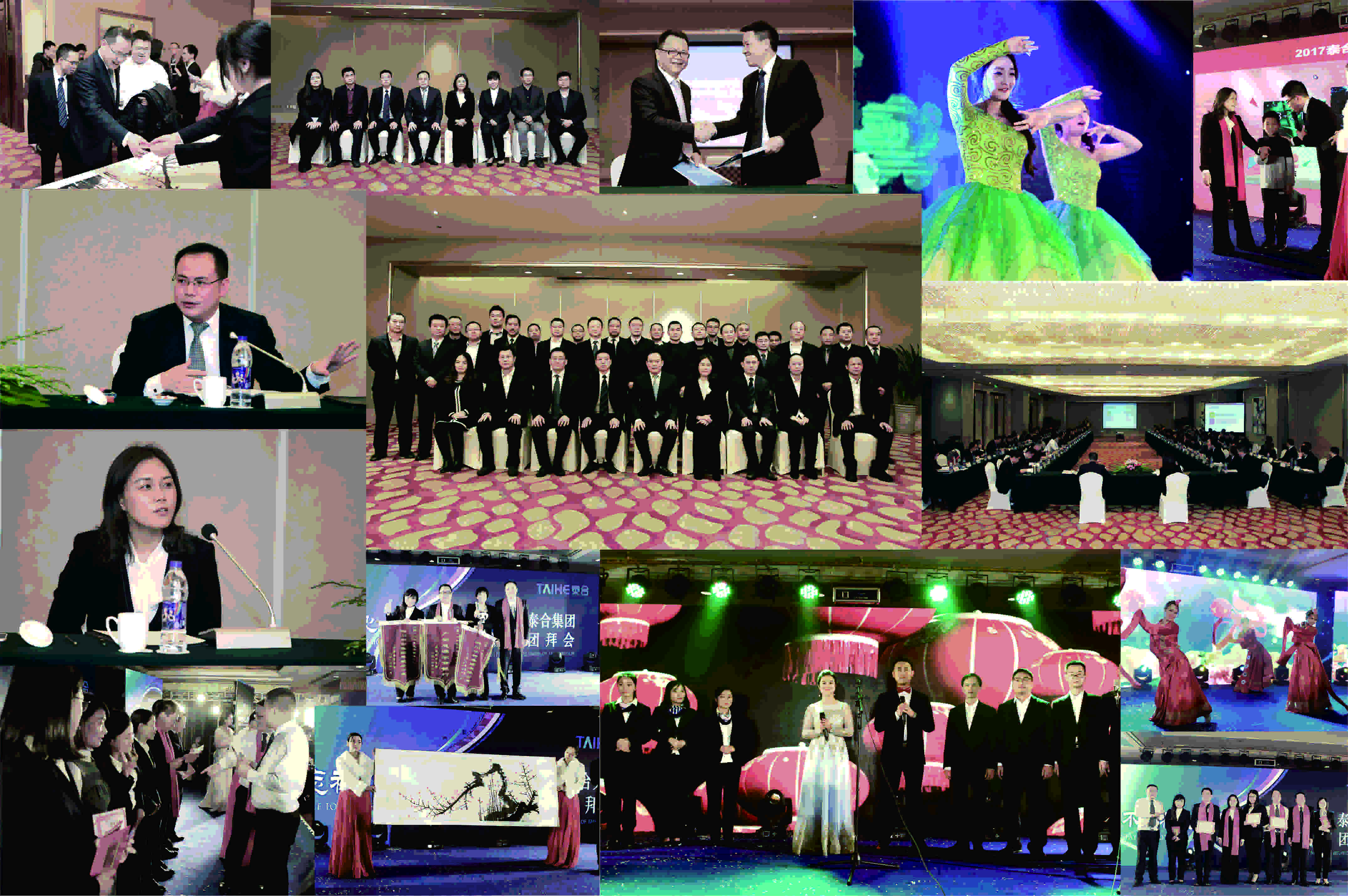 在2017年新春年会上,王仁果主席代表集团董事局及家人向全体员工拜年,他说,2017年,泰合集团将迎来15周岁生日,希望每一个泰合人秉承专业、专注的精神,以国际化视野、高起点平台创造更多的泰合奇迹。联欢晚会上,表彰了14名优秀员工、5名优秀管理者和3个优秀团队。伴随着精彩的歌舞、激动的抽奖、紧密的互动等节目上演,以泰合员工签到手印为模型创作的红梅绽放画卷,寓意“梅花香自苦寒来”,现场惊艳“亮相”将晚会推向高潮。当《泰合启航》主题歌响起,全体人员应声起立,台上台下唱和呼应,晚会在激情澎湃、欢乐祥和的气氛中落下帷幕。