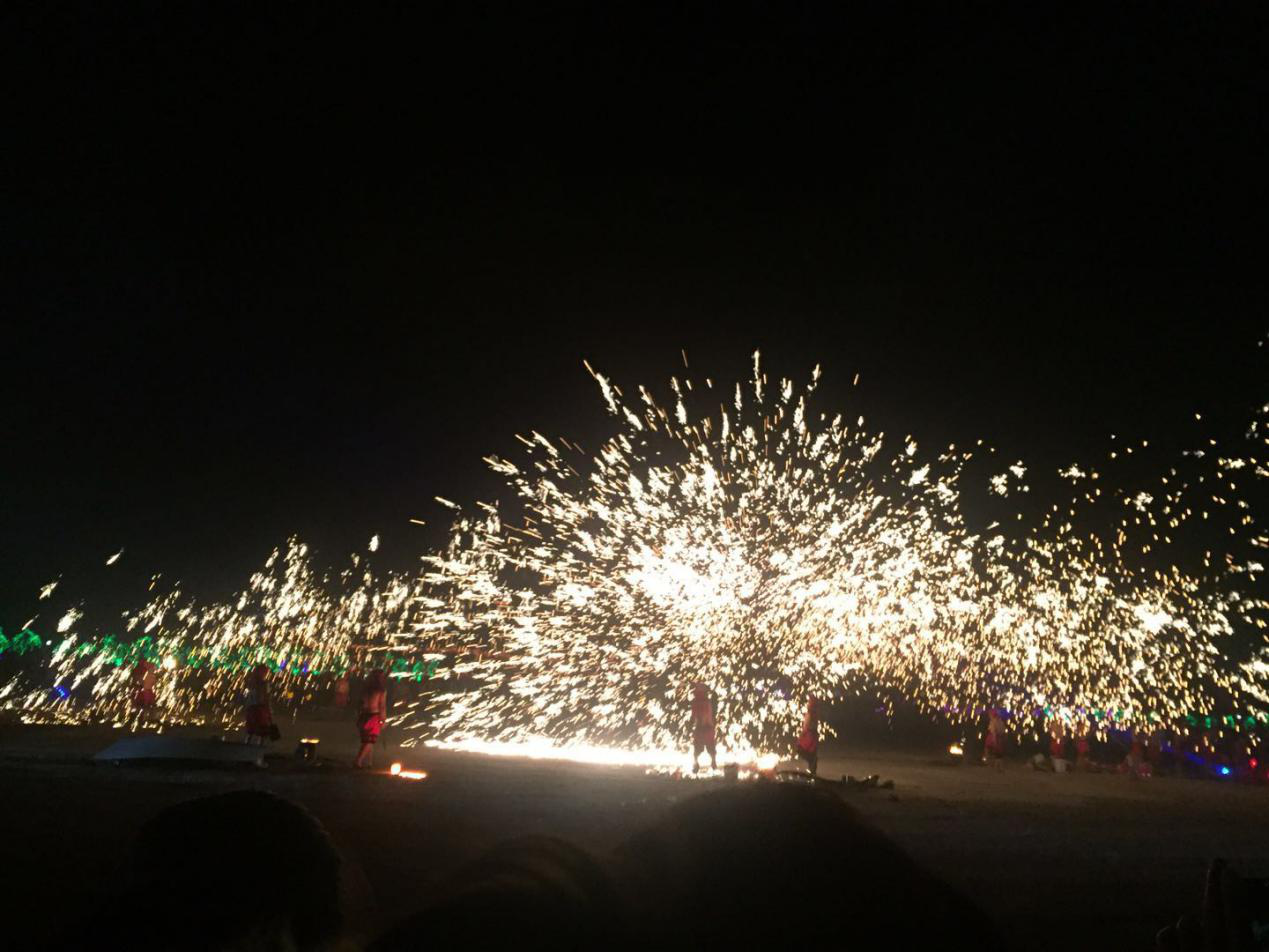 夜色中,钢花如天女散花,又如漫天飞雪,只见“人在龙中舞,龙在火中飞”,蔚为壮观。